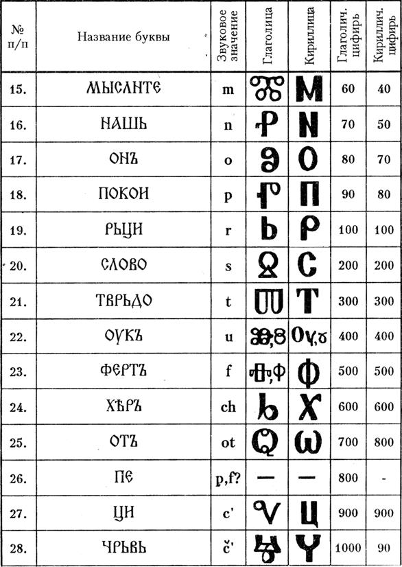 глубины веков церковнославянская традиция донесла до нас перечень буквенных
